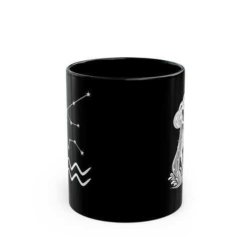 Aquarius Zodiac Black Mug — Astrology Constellation & Water Bearer Design (11oz/15oz)